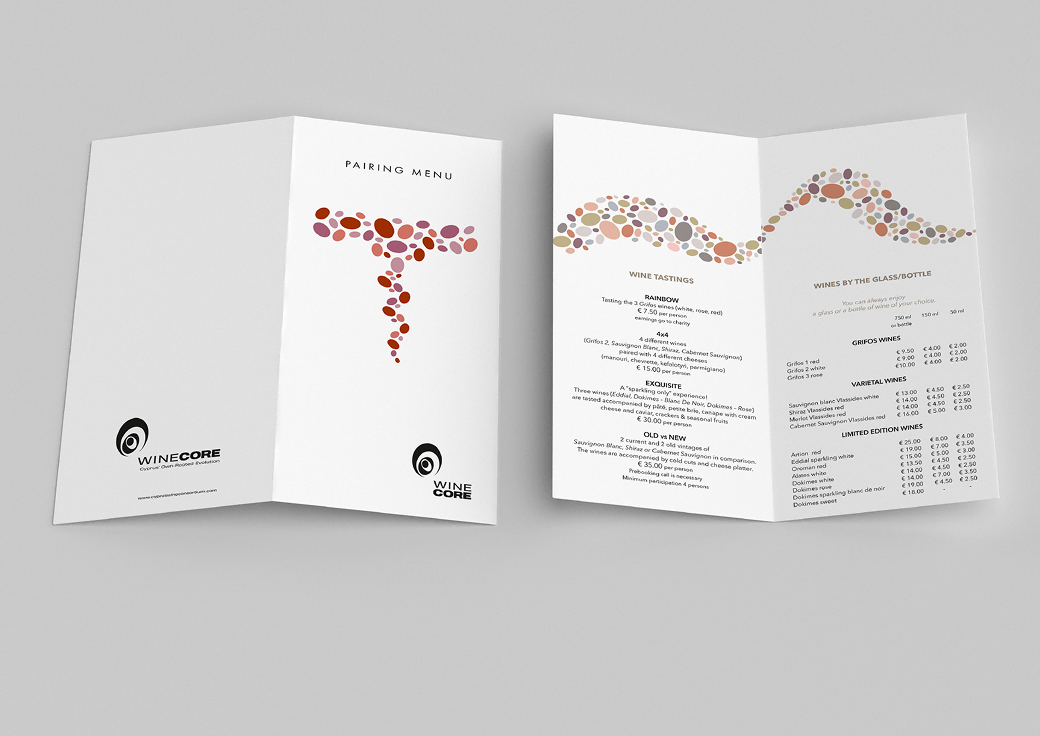 Η οπτική ταυτότητα θέλαμε να είναι δυνατή, ξεχωριστή και να αποδίδει όλα τα χαρακτηριστικά του brand name αλλά και να αναδεικνύει την έννοια της συνεργασίας. Ρώγες σταφυλιού, η μία μέσα στην άλλη, με ένα κεντρικό πυρήνα, δημιουργούν μία εικόνα σύγχρονη, με κίνηση, με δυναμισμό.