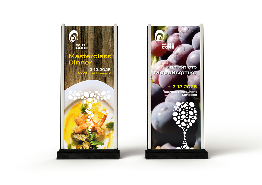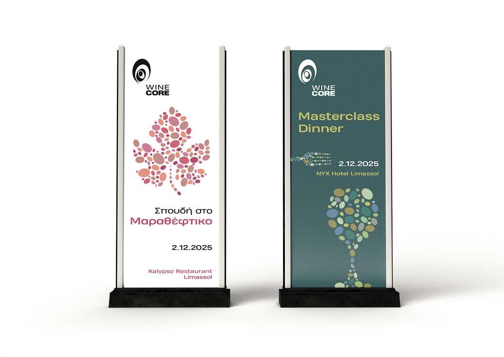 Η Κύπρος και το κρασί της στο προσκήνιο. Ζητούμενο ήταν να σχεδιαστεί μία ταυτότητα που να αποτυπώνει τη σύνθεση, να είναι μοναδική, να έχει δύναμη, να μπορεί να πλάθεται και να μπορεί να δημιουργεί πολλαπλές εικόνες.